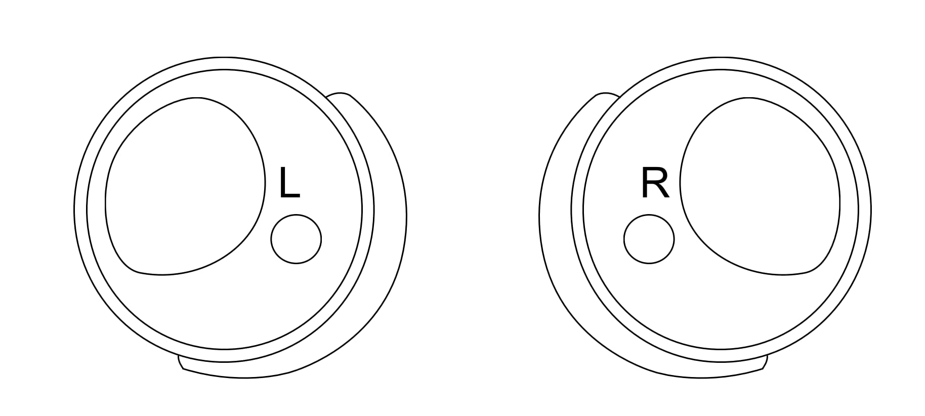 Your NuraTrue Pro comes with two sizes of wing attachments: small and large. Each wing attachment needs to be connected to the corresponding side. To check which side the wing attachment needs to be connected, view the underside to locate the printed L or R: